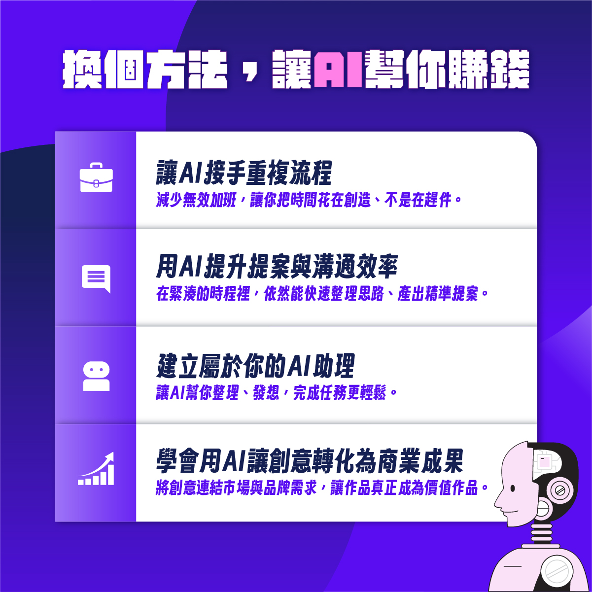 老師們不是在教你指令,而是要教你怎麼結合AI×美學×商業,把你的創意變現成鈔票💰