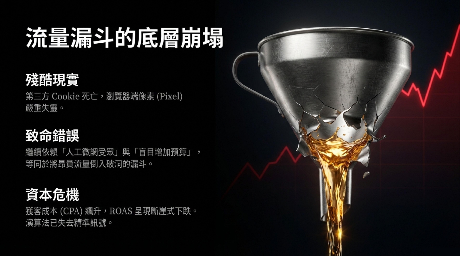 在 2026 年的數位市場,傳統的單點行銷戰術已全面失效。第三方 Cookie 退場與隱私政策緊縮,導致瀏覽器端的像素(Pixel)嚴重失靈。