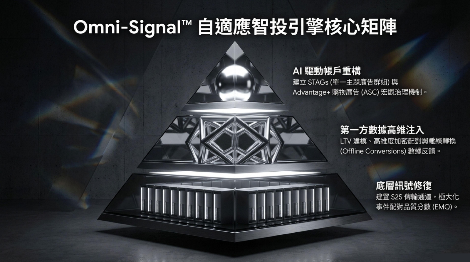 核心目標:終結經驗主義盲投,全面升級為「全域訊號矩陣 (Omni-Signal)」驅動之自適應出價架構,並建構可自我迭代的閉環式變現飛輪。